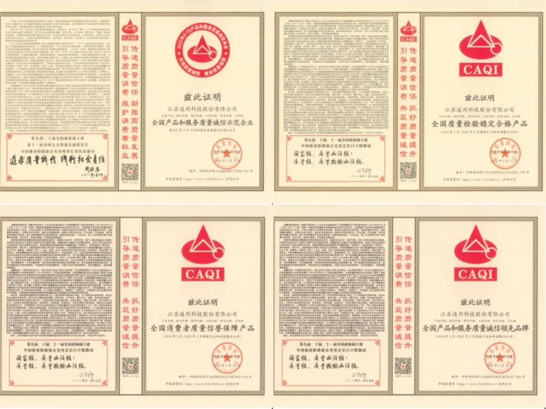 3月15日,通用股份被中國(guó)質(zhì)量檢驗(yàn)協(xié)會(huì)授予2022年全國(guó)產(chǎn)品和服務(wù)質(zhì)量誠(chéng)信示范企業(yè)、全國(guó)消費(fèi)者質(zhì)量信譽(yù)保障產(chǎn)品、全國(guó)質(zhì)量檢驗(yàn)穩(wěn)定合格