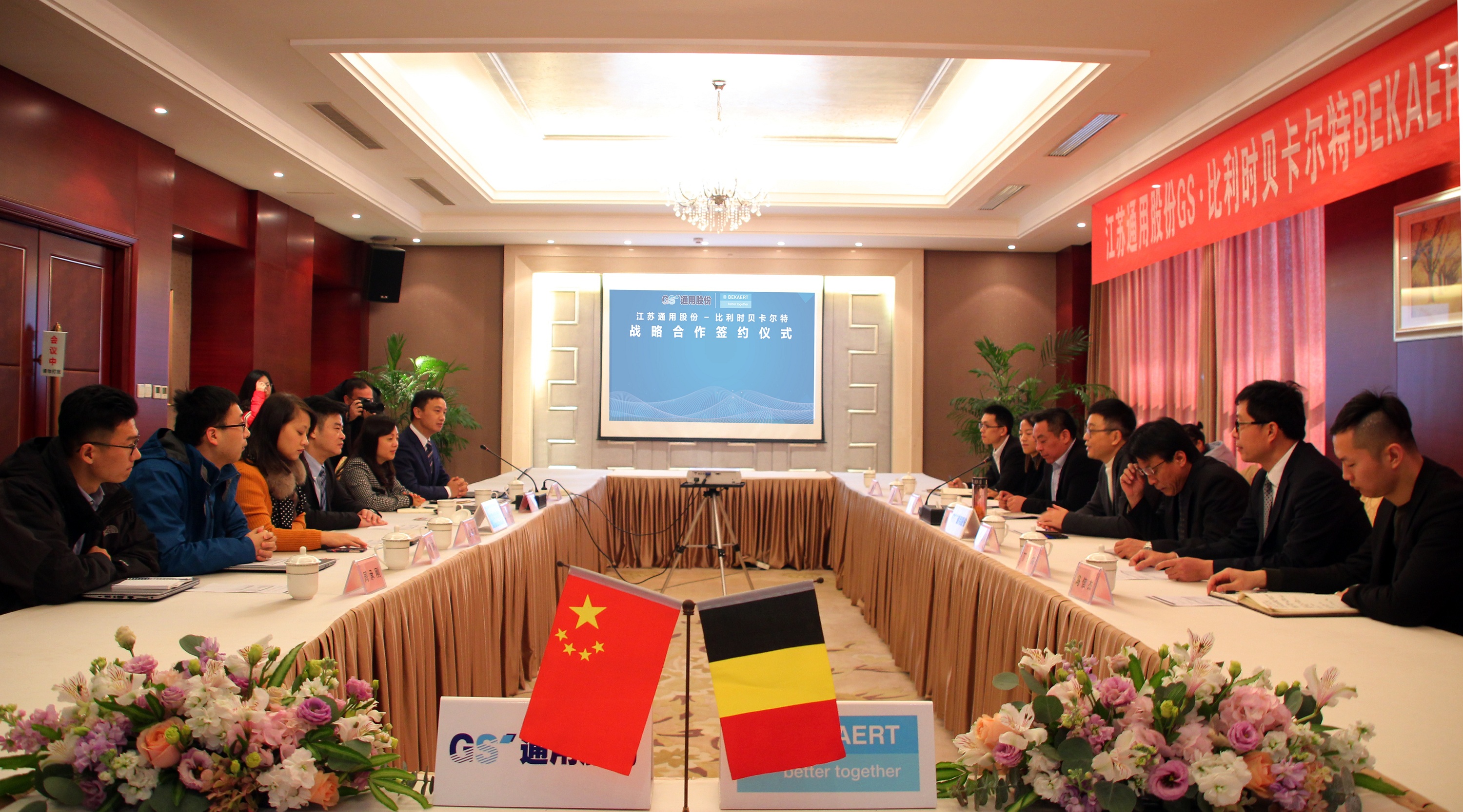 1月21日,通用股份與比利時貝卡爾特鋼簾線簽署深化戰略合作協議。通用股份董事長顧萃、常務副總經理程金元,貝卡爾特北亞區商務總經