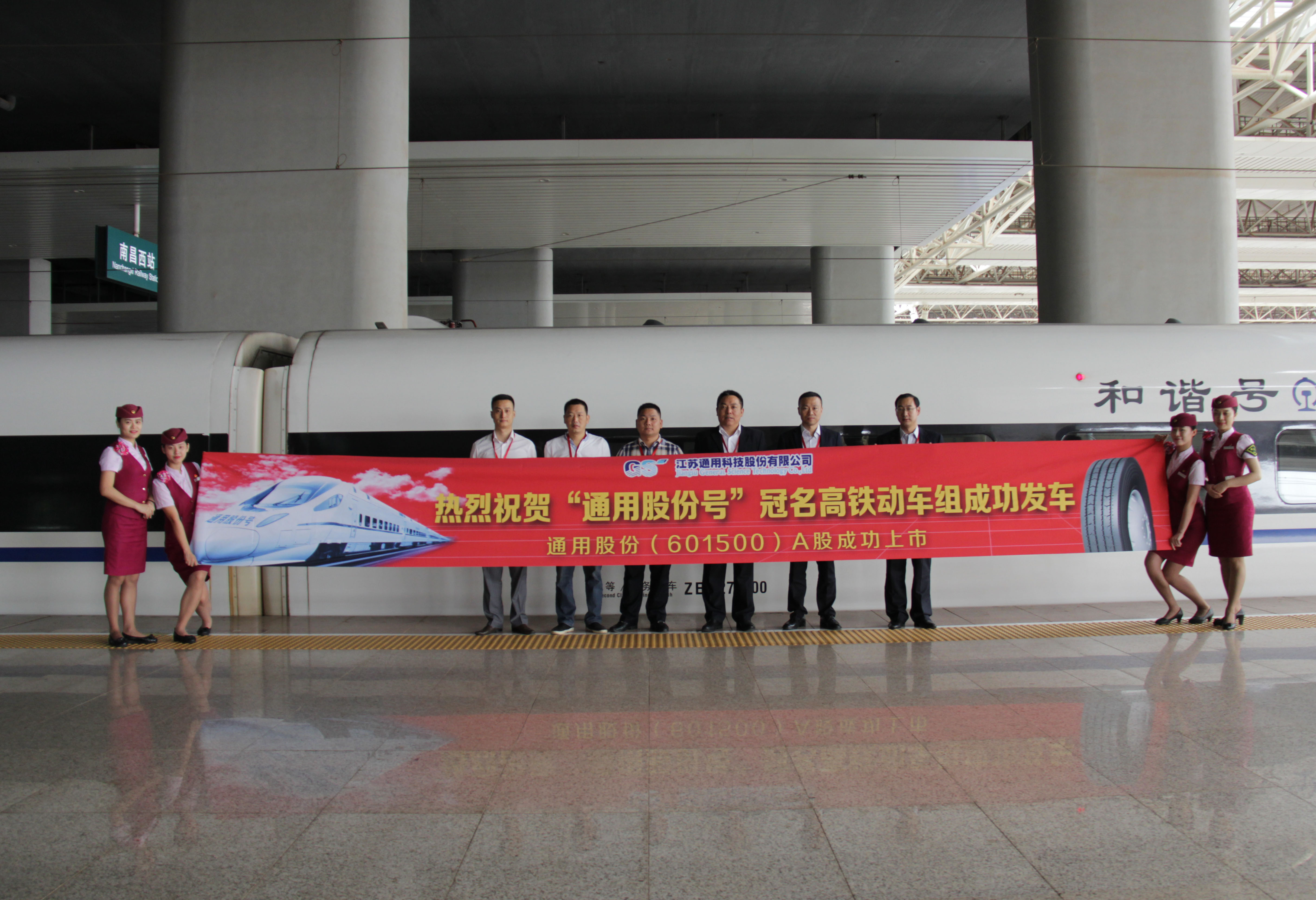9月19日,江蘇通用科技股份有限公司在上交所鳴鑼上市(以下簡(jiǎn)稱通用股份,股票代碼601500),標(biāo)志著通用股份在資本市場(chǎng)的騰飛跨越。9月20日,一列滿載著喜悅與希望的“通用股份號(hào)”品牌專列高鐵G489從南昌西發(fā)車,跨越江西、湖南、湖北、河南、河北各省,貫穿大江南北,駛往首都北京。此次“通用股份號(hào)”發(fā)車是通用股份借力高鐵、乘勢(shì)而上的又一大品牌建設(shè)舉措,利用高鐵全冠名的媒體組合形式,全力打造國人了解通用股份的新窗口。