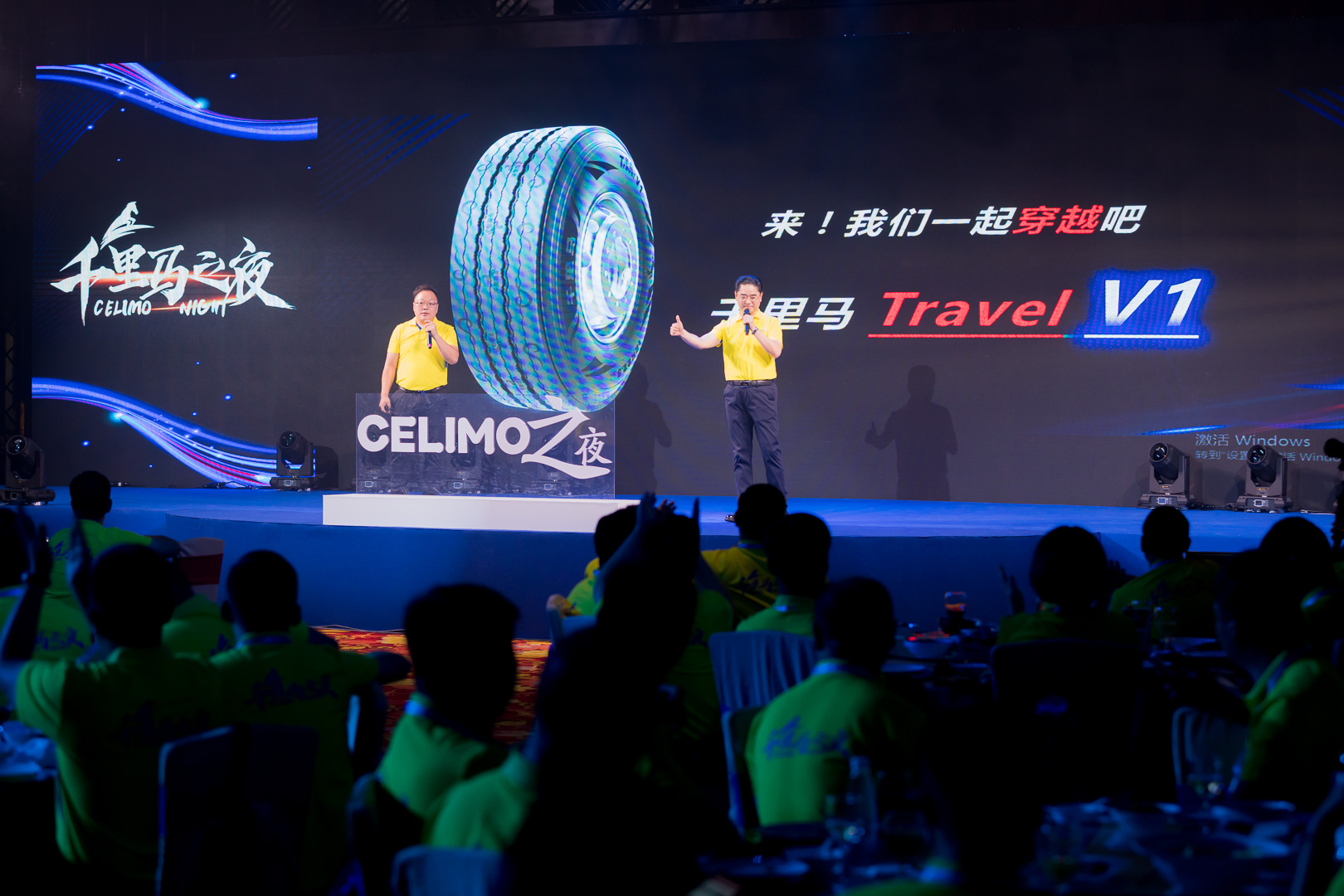 隨著沙畫表演《穿越之旅》的馳騁千里,一款長途卡車拖輪專用輪胎穿越V1閃耀亮相。胎側曲線組成勝利 “V”托舉著“千里馬”,象征王者歸來;“火箭”的頂端屹立著“千里馬”,寓意夢想穿越。