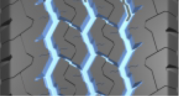 三條寬闊的曲折排水溝槽,有效防止輪胎側(cè)向打滑;S型花紋設(shè)計(jì),提高輪胎制動(dòng)剎車性能。